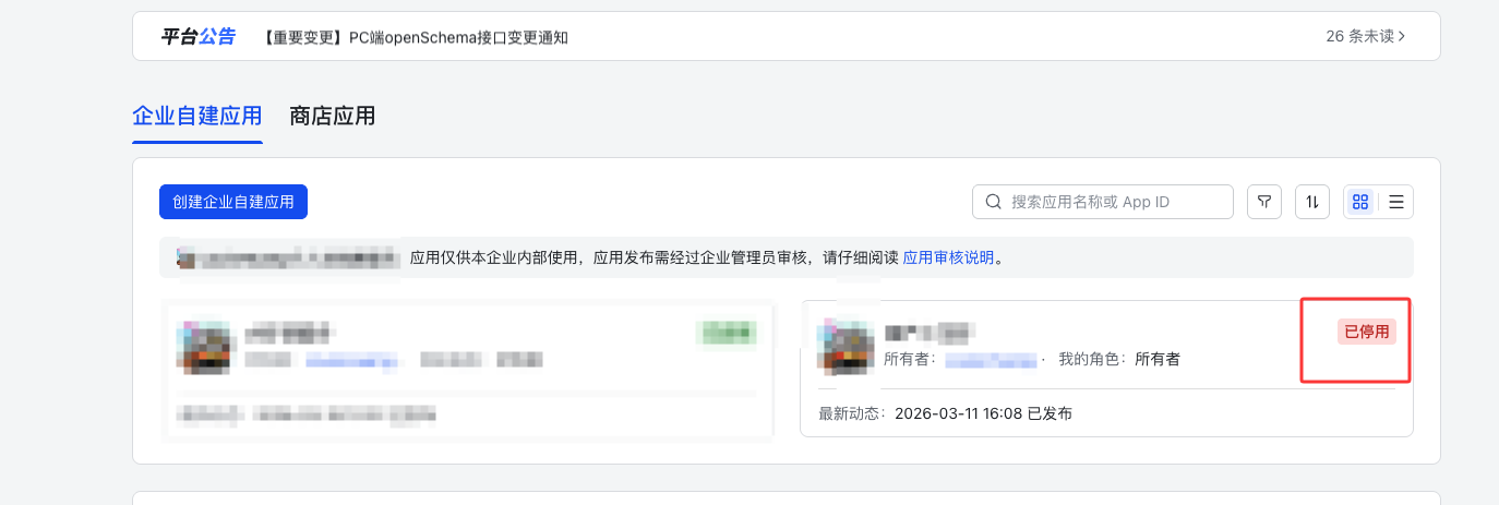 找到我们刚才停用的应用,点击进入管理页面