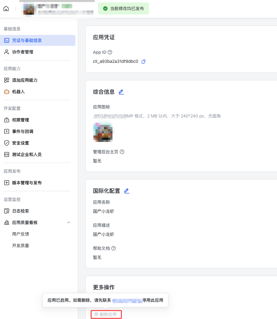 飞书长长心吧,真的,一个删除应用,愣是被你们整得乱七八糟的,你们的产品可以下线了;咋想的啊。没权限可以不删,但是为毛我在应用页面你不让我删?????