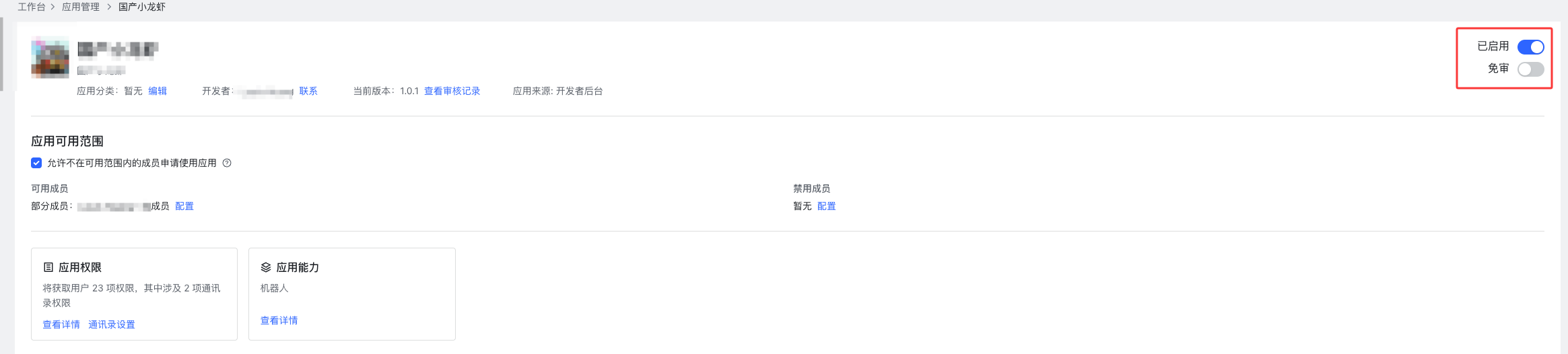 点击右上角的【已启用】按钮,进行应用停用